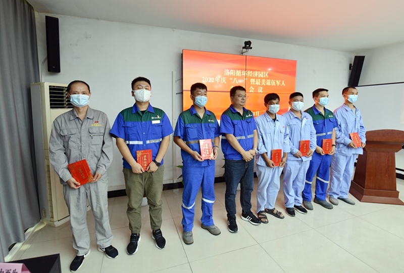 为庆祝中国人民解放军建军95周年,进一步激励洛阳循环经济园区全体退伍军人珍惜荣誉、踔厉奋发,8月1日,洛阳循环经济园区召开2022年庆“八一”暨最美退伍军人表彰会议。洛阳循环经济园区、孟津区退役军人服务中心负责人、园区骨干企业代表和受表彰的优秀退伍军人参加会议。
