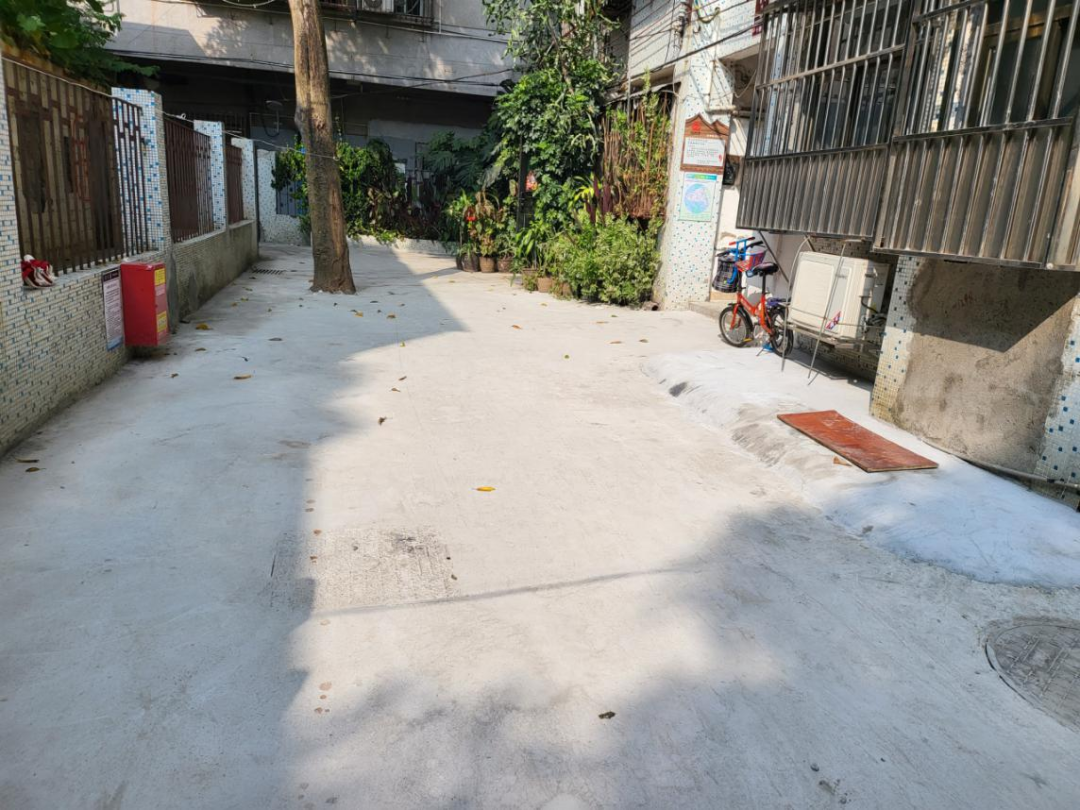 经过整治,原本凹凸不平的路面得到了修复,污水管网也更换了新的,井盖与地面的高度被抹平,此次修缮面积共计约300平方米。