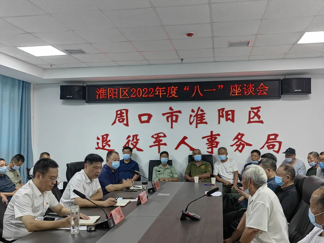 为关心广大退役军人,重视退役军人工作,2022年8月1日上午,淮阳区召开“八一”建军节座谈会,共同庆祝中国人民解放军建军95周年。淮阳区退役军人事务局党组书记、局长陈述出席会议,区退役军人事务局副局长阮传华及工作人员参加会议,部分参战参试老兵、军转干部、伤残军人40余人受邀参加。