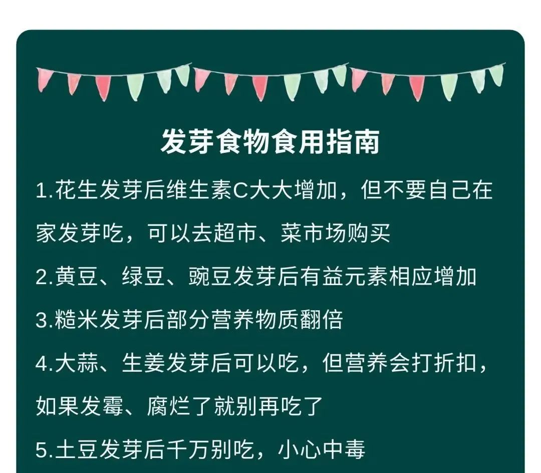 那么,生活中一些常见的食物,如花生、土豆、红薯、大蒜、生姜等,它们发芽究竟会营养翻倍还是产生毒素呢?这就带你去了解一下!