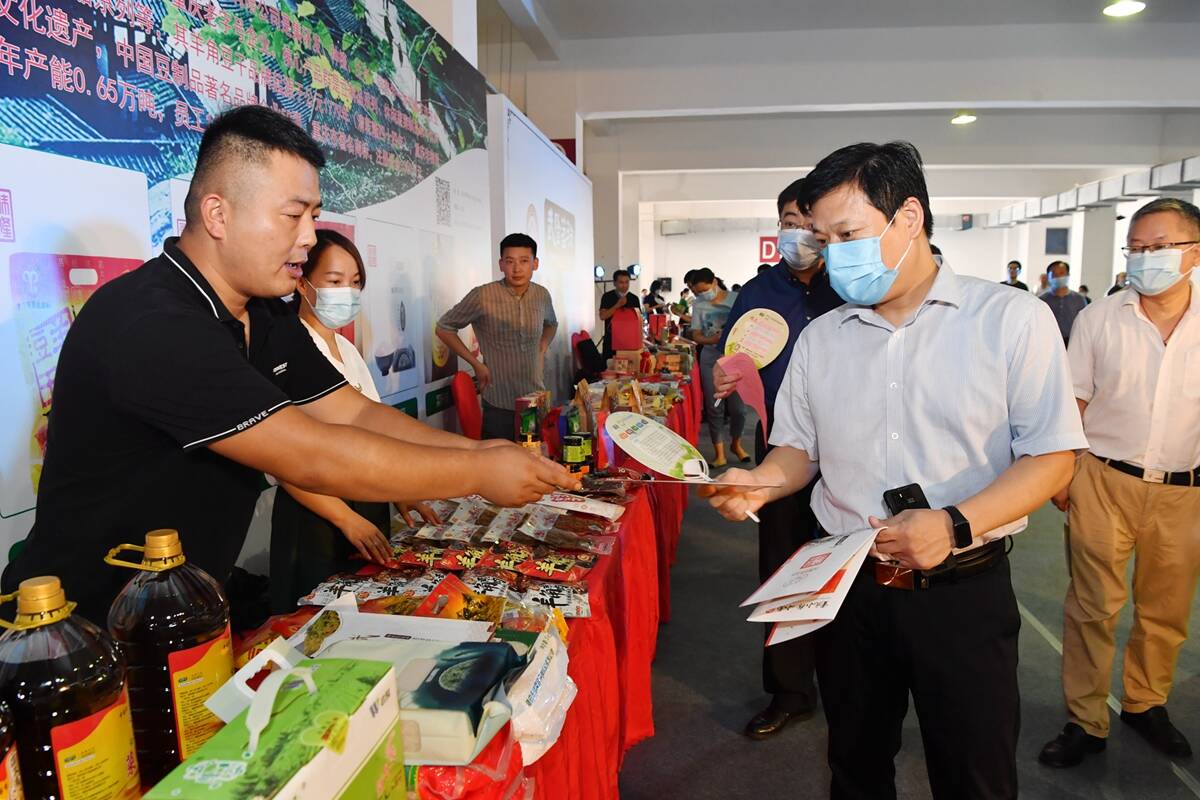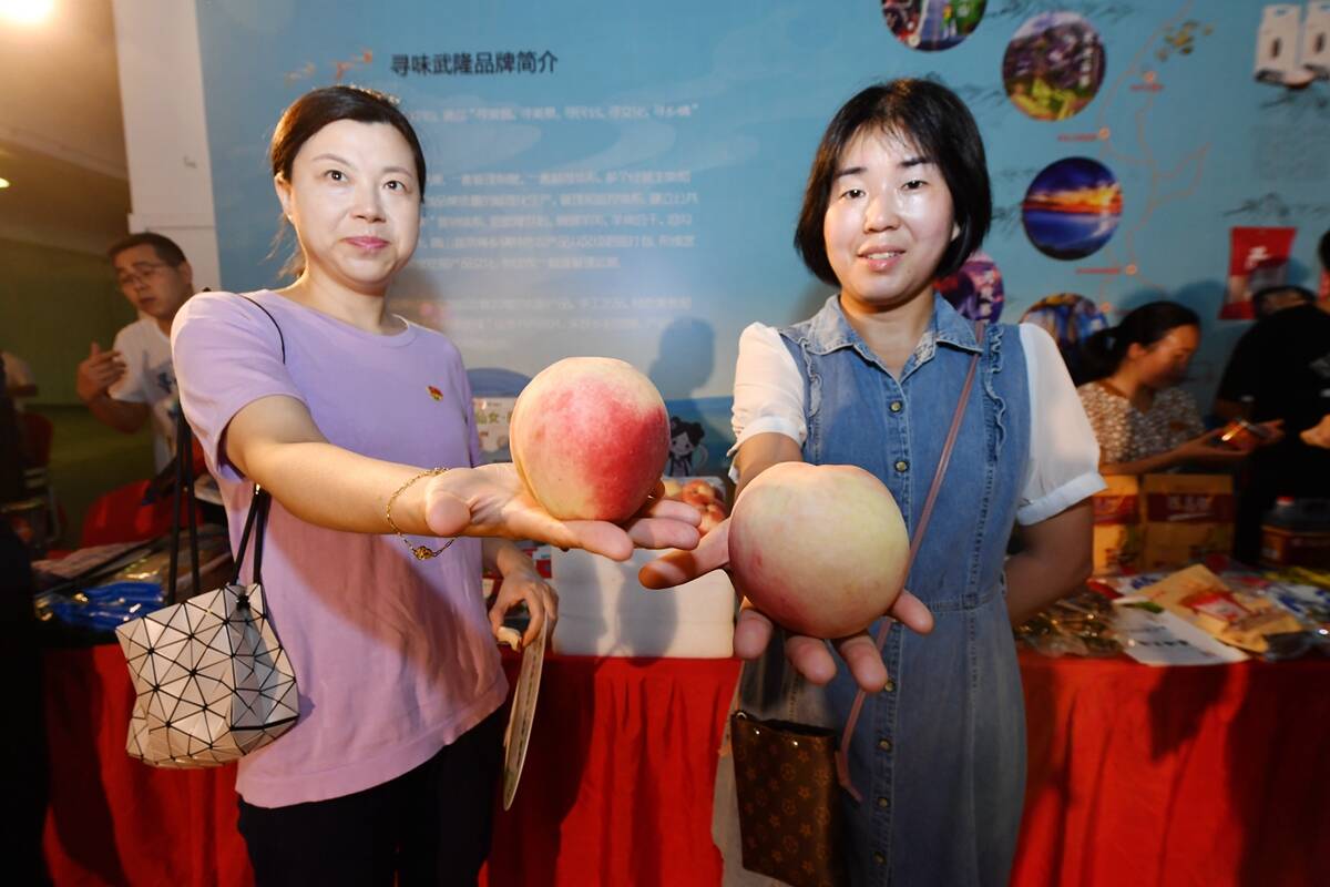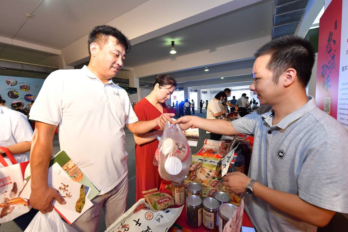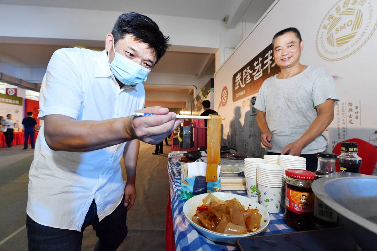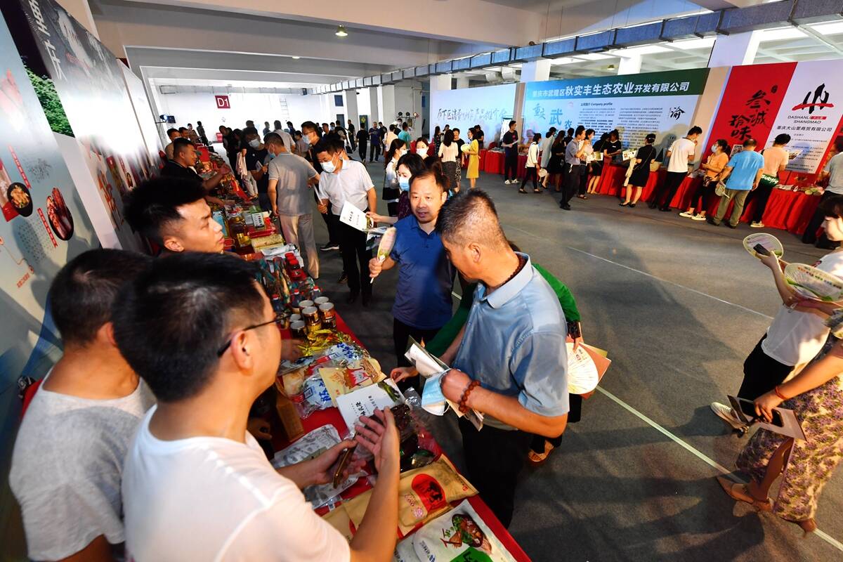 随后,与会领导和嘉宾参观了推介会展位,了解来自重庆武隆的各色美食及土特产品。