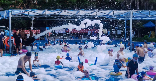 武昌南湖一小区别出心裁,制造泡沫游泳池,娃娃们泡在水里,纵情享受清凉惬意的“泡沫之夏”。