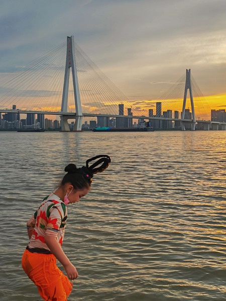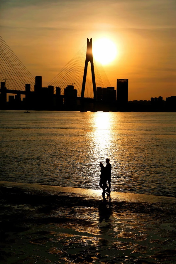 武汉人天生亲水。夏日傍晚,当太阳收起烈焰,把瑰丽的霞光温柔地洒向江面,江滩就成了人们纳凉的欢乐海洋。有玩水的孩子们,有拍写真的恋人们,连“汪星人”也在水里岸上蹿来蹿去,跟主人玩得不亦乐乎,更有摄影爱好者“长枪短炮”无人机齐上阵,只为了记录下动人的夏日瞬间。