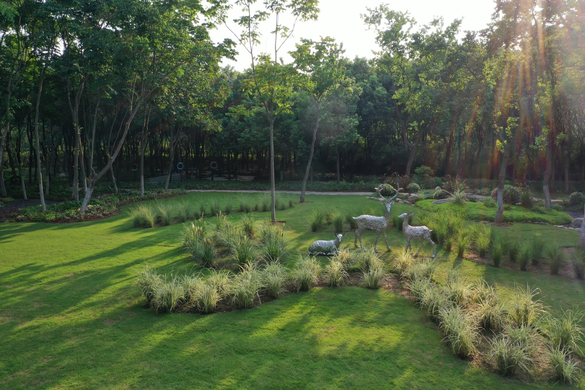 8月2日下午,记者从公园南入口进入园区,入口处由少量灌木、 球根花卉、艺术小品等组成的花境小品让人眼前一亮。