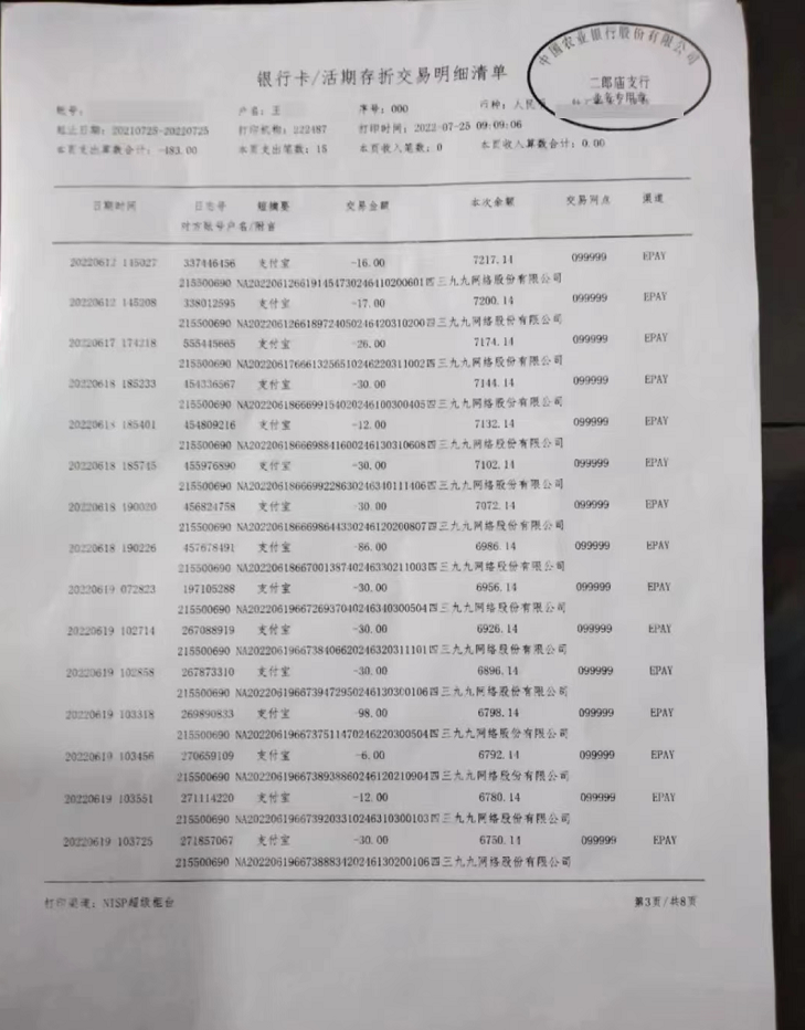 第二天一早,王大爷立即来到当地银行进行核实,在工作人员的帮助下,王大爷查询到,这些款项,绝大多数都用于游戏充值,购买了虚拟皮肤,前后支出近9000元。