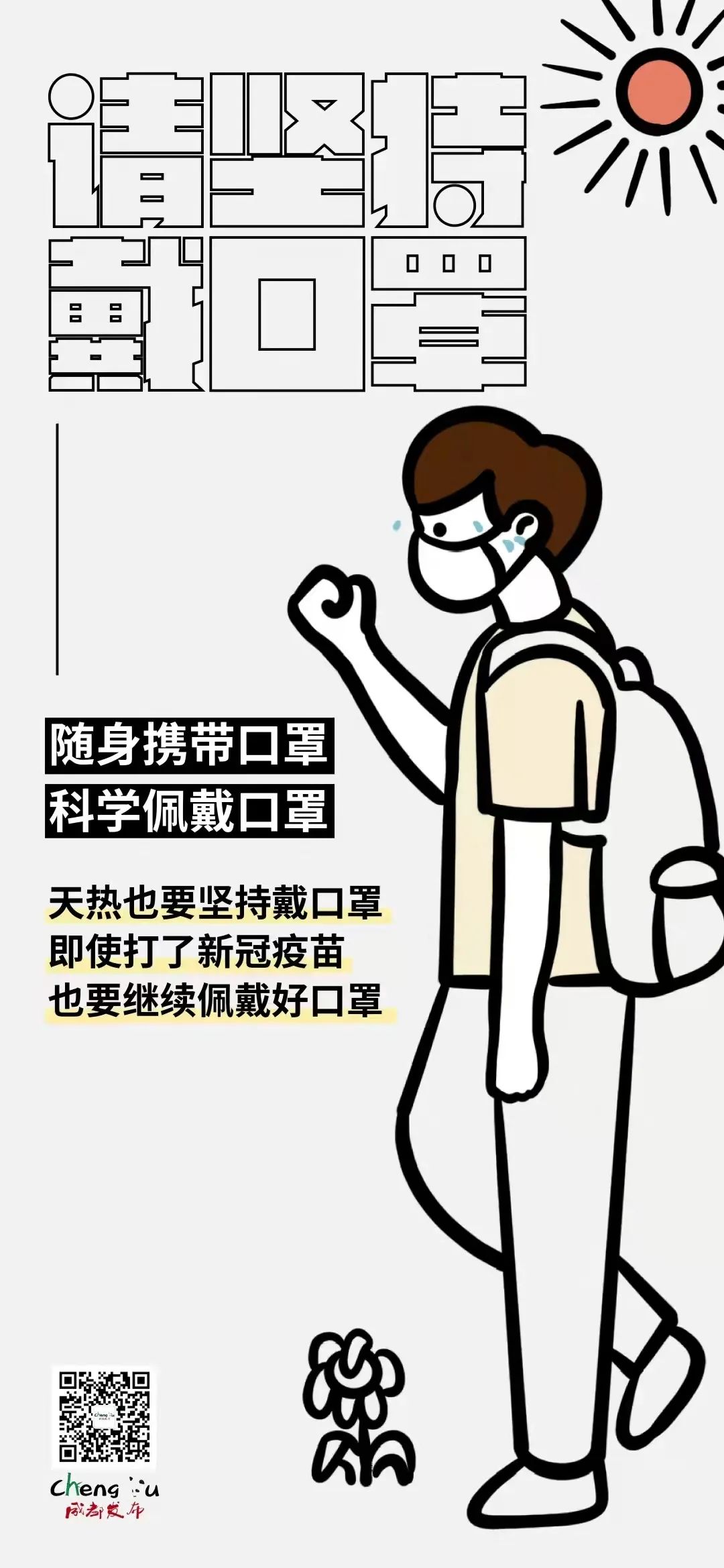 市民朋友们!疫情还未结束,防控不可松懈。让我们继续坚持科学佩戴口罩、保持社交距离、注意个人卫生,坚持“两点一线”的工作生活方式,不聚集、不扎堆,进出公共场所主动测温、扫码、亮码,同时继续配合核酸检测、隔离管控等措施,齐心协力共同守护好我们健康的生活和熟悉的城市!
