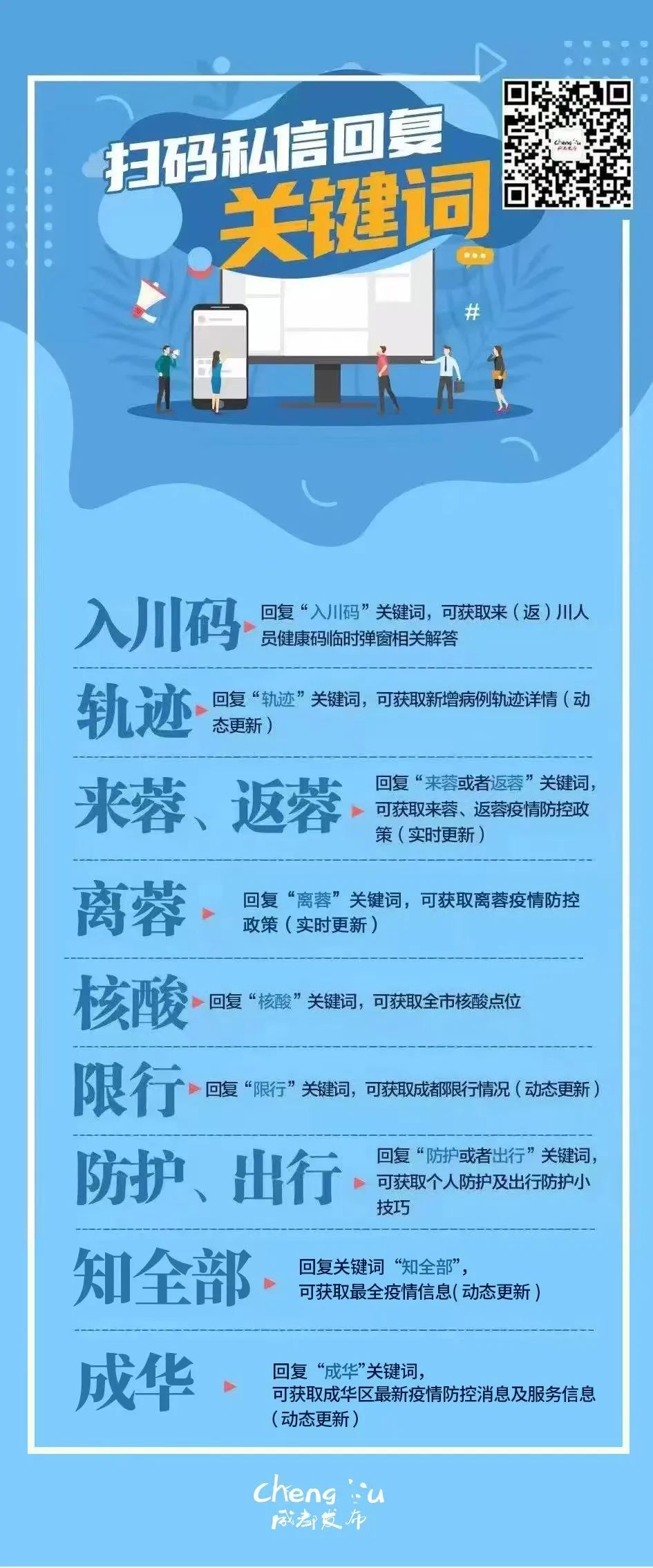 同时,我市锦江区、青羊区、金牛区、武侯区、高新区等地也对室内文娱场所、大型活动进行了一定限制。市民朋友需要关注官方信息,了解本区的管控要求。目前,疫情虽已进入扫尾阶段,但越到收尾阶段,越要高度警惕,越要严防死守。市民朋友们更要坚持做好个人防护,配合核酸检测、扫码亮码等防疫要求,出现异常症状要主动、规范就诊,有中高风险地区旅居史或与病例有轨迹重叠积极向社区、单位报备。目前,离蓉仍需持有48小时核酸阴性报告,请市民朋友提前做好准备。