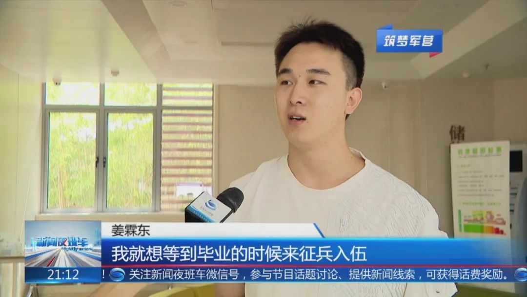 姜霖东告诉记者,演员吴京在拍摄《战狼》期间,曾经入伍到特种兵训练,这让他非常敬佩,因为是从小练的武术,武侠剧接触的比较多,就想等到毕业的时候来征兵入伍。