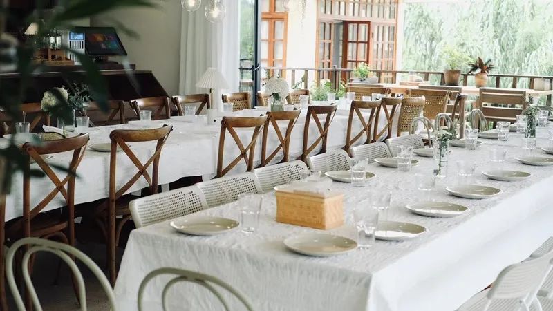这是一种规模不大但稳定繁荣的运营模式。“郁见你”的二人间客房定价大概六百元一晚,相当实惠,几乎每天都能订满。餐厅人均消费则要三五百元,在远郊无疑属于中高一档,却也一座难求。顾客郑先生说,且不论菜色,周边再难找到一家这般环境高级、私密性强的场所,老友小聚、商务会谈“非此不可”。民宿还每周承接一两场聚会、团建或是商业活动,郁小姐的朋友组成团队,提供策划、执行服务。
