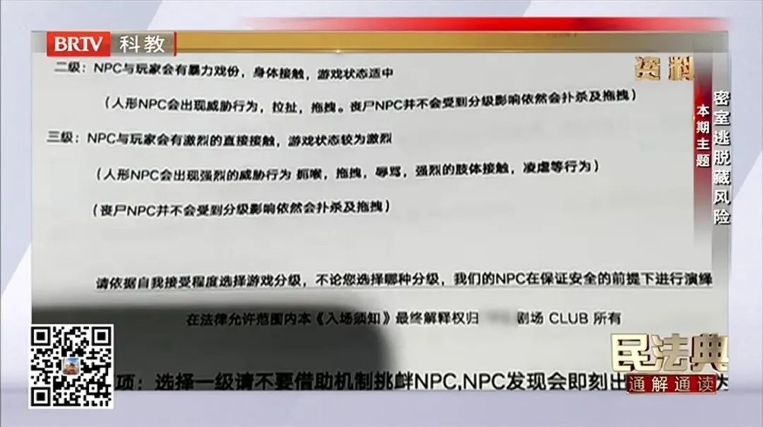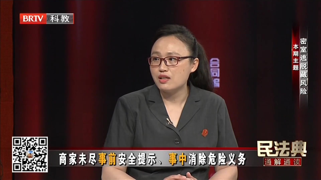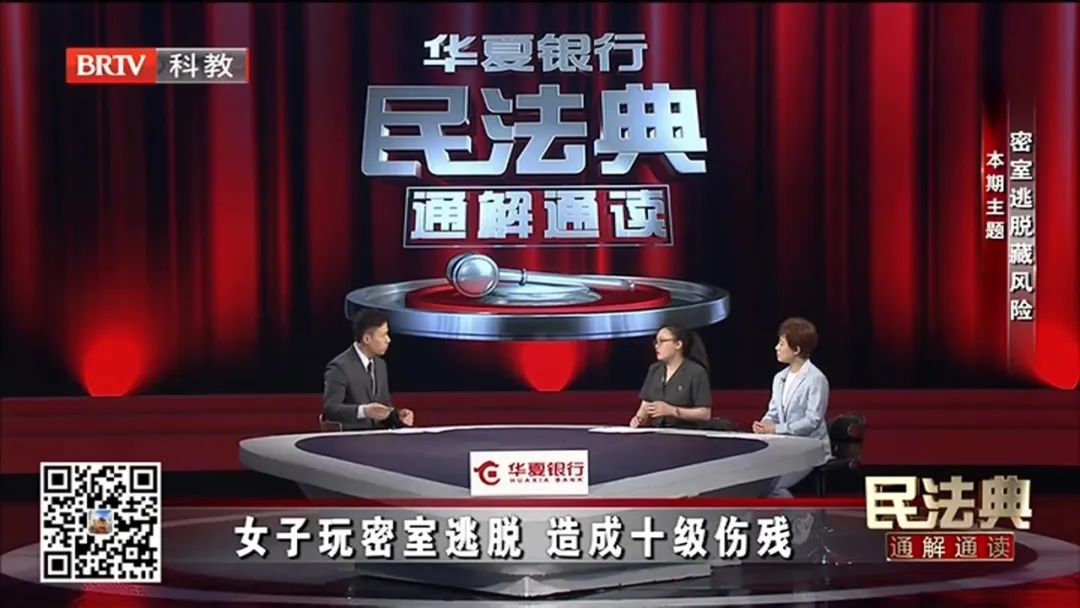 北京广播电视台科教频道《民法典通解通读》栏目特别邀请了北京市朝阳区人民法院法官胡莉芬以及北京市律师协会律师程屹,共同解读密室逃脱中的法律风险。