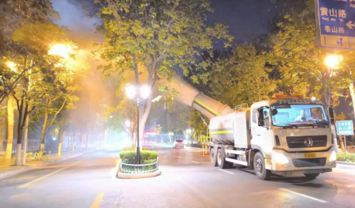 8月3日凌晨1点,漯河市城管局园林绿化养护中心职工运用防治车辆仍在市区嵩山南段,对道路两侧的绿化植物病虫害进行喷药防治。