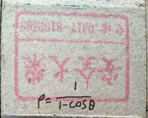 然后,她边转身拿包包,边说:“也许您听说过那个笛卡尔给公主写信的故事,信中只有一个方程,是一个心形线方程。奶奶知道那个故事,所以她对爷爷给她写个抛物线方程非常不理解…我这有纸条的照片,方便的话一会我加您微信,给您发过去。”说着她把显示着纸条的手机放在茶几上,又轻轻往我这边推了推。“我这也有纸条照片,我这就给您发过去。”熵在旁边突然插话道。“奶奶一直坚信这纸条一定有别的意思,所以想请您帮忙看看。”女孩缓缓地说道。我拿过手机一看,的确只有一个极坐标方程,其实我并不熟悉抛物线的极坐标方程,但他们说是,那应该就是了。这种事,一般错不了。而所谓的纸条,其实是火柴盒的一片。我想象着,想象在她爷爷那样的处境下,给爱人的最后一个信息有可能是什么呢?而抛物线应该是个提示,或者是个隐喻。这很容易让人联想到“抛开我,和我划清界限”。而且这联想也能说得通,毕竟在那种情况下,最担心的就是连累到家人,让家人抛开自己,好好生活,这是可以理解的。我没有把我的想法说出来,怕给她泼冷水,但又不能一直沉默着。空气好像越来越凝重,我都能听见她的呼吸声了。