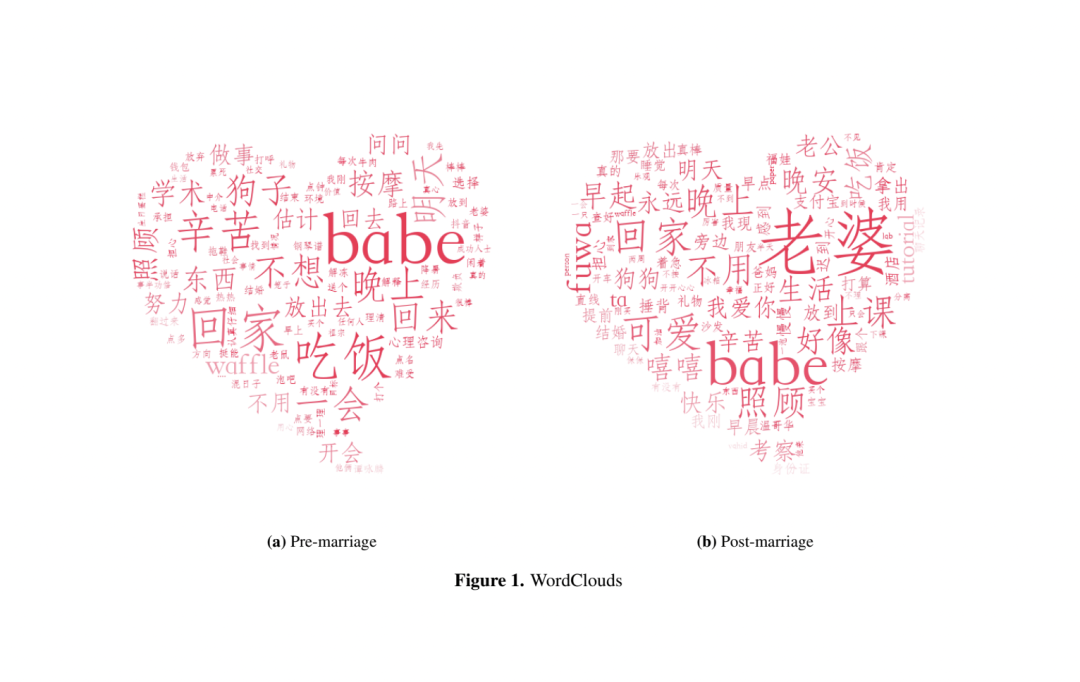 高频词分析结果的可视化图形,左为婚前,右为婚后 | 作者供图