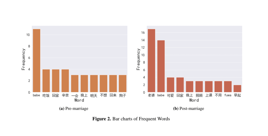 高频词柱状图,左边为婚前,右边为婚后 | 作者供图