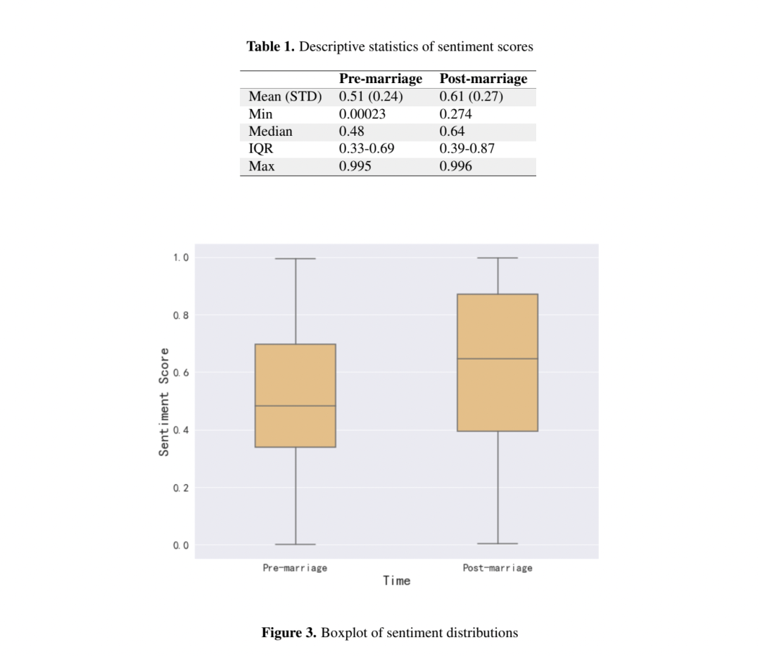 婚前婚后用词的情感数值得分结果,左为婚前,右为婚后 | 作者供图