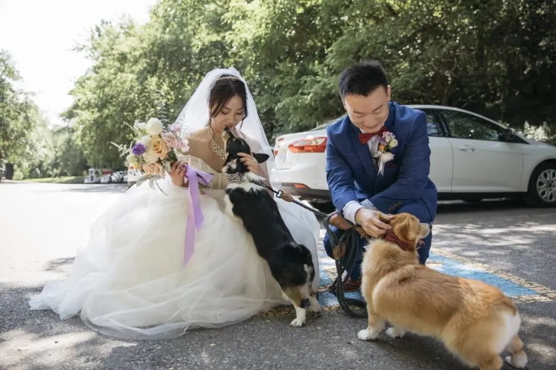 婚礼现场跟我们的两只狗狗在一起 | 作者供图