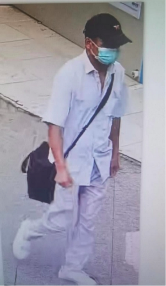 (犯罪嫌疑人刘小辉作案时衣着,逃匿途中将鸭舌帽、口罩及斜挎包等物品遗弃)