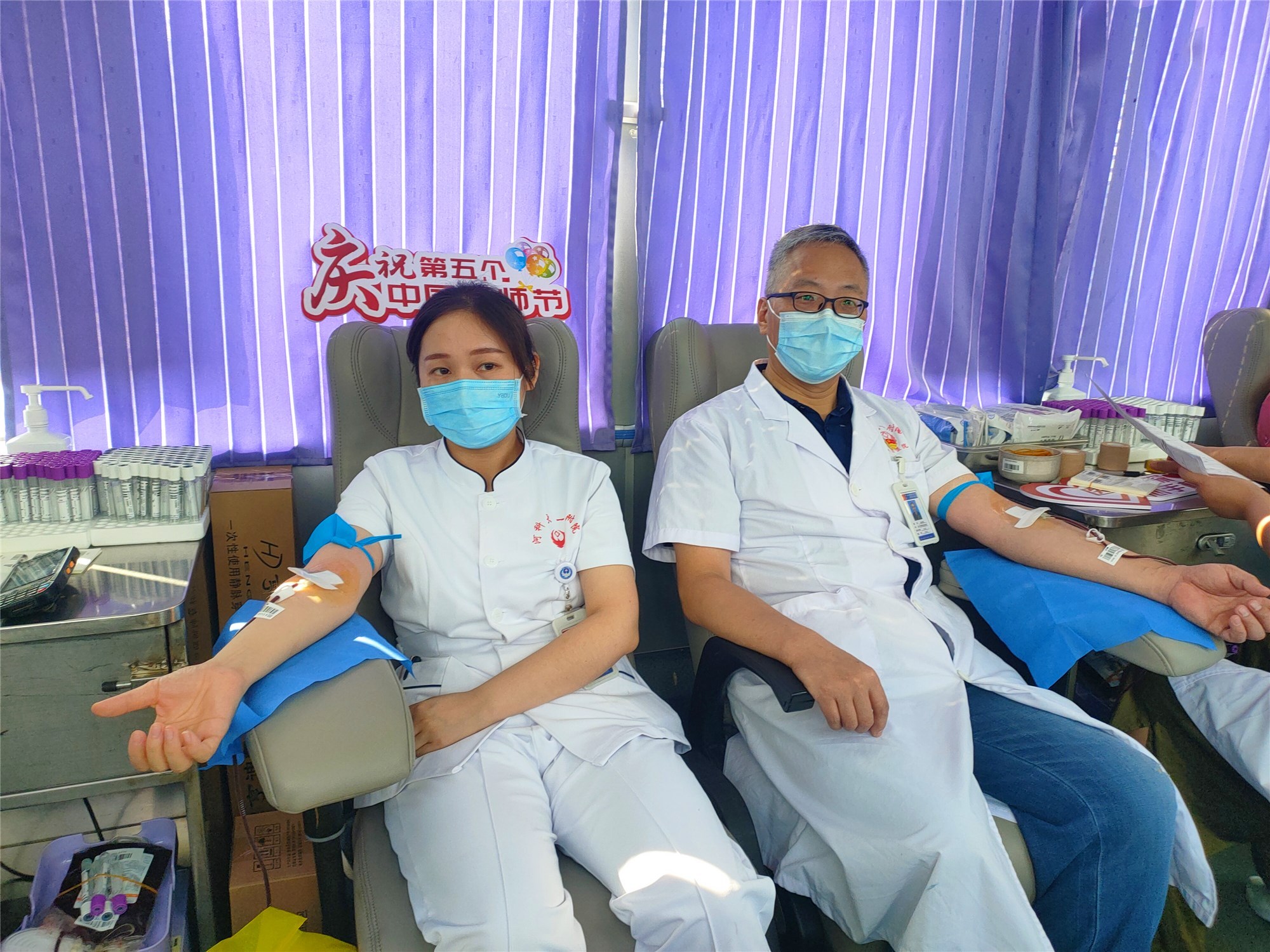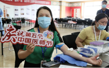 当日,在第五个中国医师节即将来临之际,为大力弘扬“敬佑生命、救死扶伤、甘于奉献、大爱无疆”的崇高职业精神,河科大一附院向全院党员干部职工发出倡议,联合洛阳市中心血站举行了“庆祝第五个中国医师节·白衣天使 奉献爱心”无偿献血活动。河科大一附院两个院区医务工作者积极响应号召,纷纷来到献血车旁,通过无偿献血,表达“医者仁心 大爱无疆”的精神。