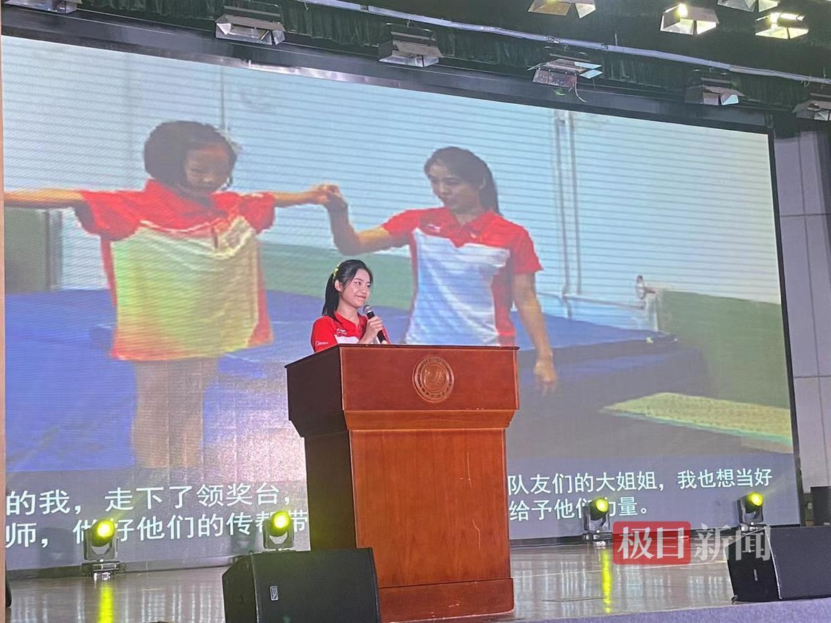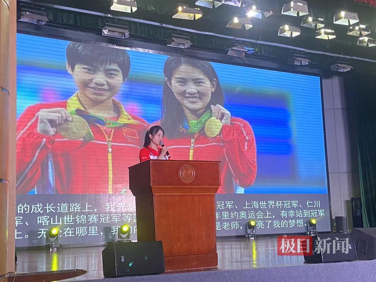 “大家好,我是湖北省跳水运动员刘蕙瑕,在每一个人的成长路上,老师,就如一盏明灯,指引着我们前进的步伐。”面对台下数百名新教师,刘蕙瑕回忆起了自己的成长故事。3岁练体操,7岁练跳水,12岁入选国家队,16岁获得自己运动生涯的首个世界冠军,19岁获得里约奥运会跳水女子双人十米台冠军……荣耀的背后,刘蕙瑕也有过困境和挣扎。