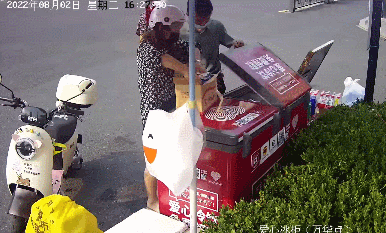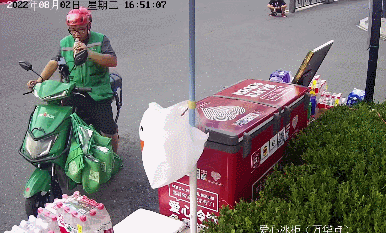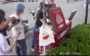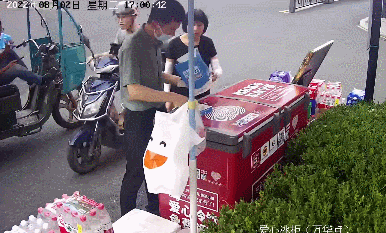 今年,史君和同事们在钱王街和江桥路各推出了一个爱心冰柜点位,因为这两个路段的户外工作者和行人都比较多。为了保证爱心冰柜不意外断货,点位上安装了监控。令人没想到的是,监控拍到的却是很多温馨的画面——