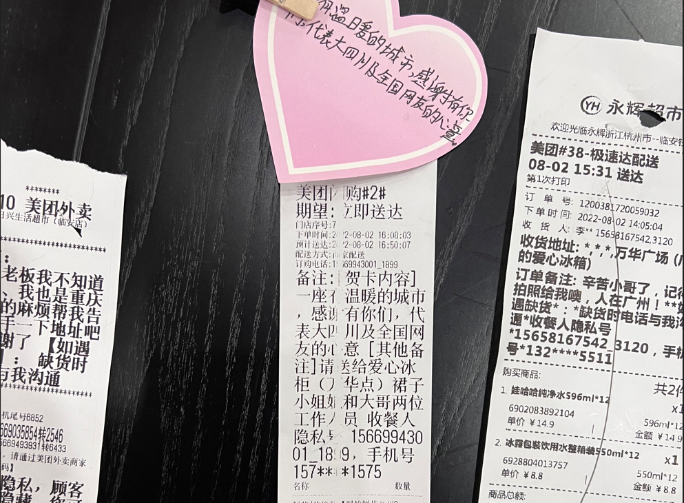 “您好,老板,我不知道地址,我是重庆这边的……”另一名外卖小哥的单子上备注了这样一段话,下单人是“重庆的杨先生”。而在另一张单子上,备注的文字更加短促有力:“辛苦小哥了,记得拍照给我,我人在广州。”