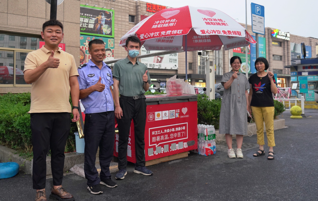 2020年,免费为户外工作者提供爱心冷饮的冰柜第一次出街。一把遮阳伞、一台冰柜,外加自己的一腔热情,史君觉得,这还远远不够。