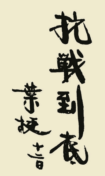 叶挺题字,笔画饱满厚重,绵里藏针,主要取法康有为,行笔放纵,先声夺人,“到底”二字行笔夸张,展示了一种视死如归的决心。“挺”字笔画长舒,尽显率真之意。