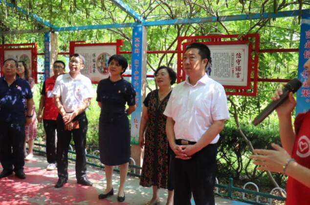 在新河镇大庄子村道德银行,工作人员介绍了村庄“家家做志愿、人人有积分”、踊跃参与道德银行的乡村治理模式,并实地查看了村庄新时代文明实践站,就村庄道德银行“志愿行为—道德币—实物或服务—志愿行为”的闭环运营模式作深入交流。