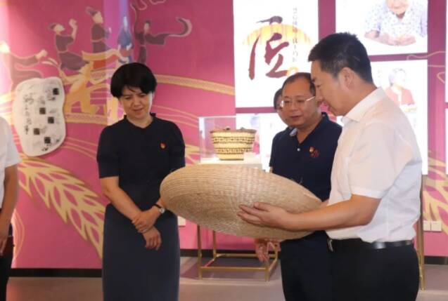 在新河镇草编手造馆,调研组在工作人员的引导下,了解了基地融合项目体验、新品展示、研学旅游等多元内容,领略了具有400余年历史、独具魅力的草编非遗文化及草编产业创新发展路径,就如何以党建为统领、以乡村振兴相结合、以发挥出新时代文明实践人才志愿者的引领作用为亮点,更好地推动新时代文明实践走深走实等工作,进行现场交流和指导。