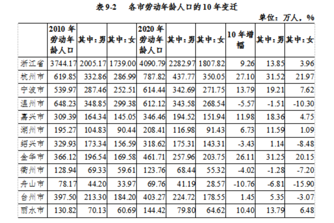 不仅如此,温州劳动年龄人口也在下降。自2010年以来的十年中,浙江劳动年龄人口增长9.26%。杭州、宁波、温州、金义四大都市区中,除温州外,都有明显增长。