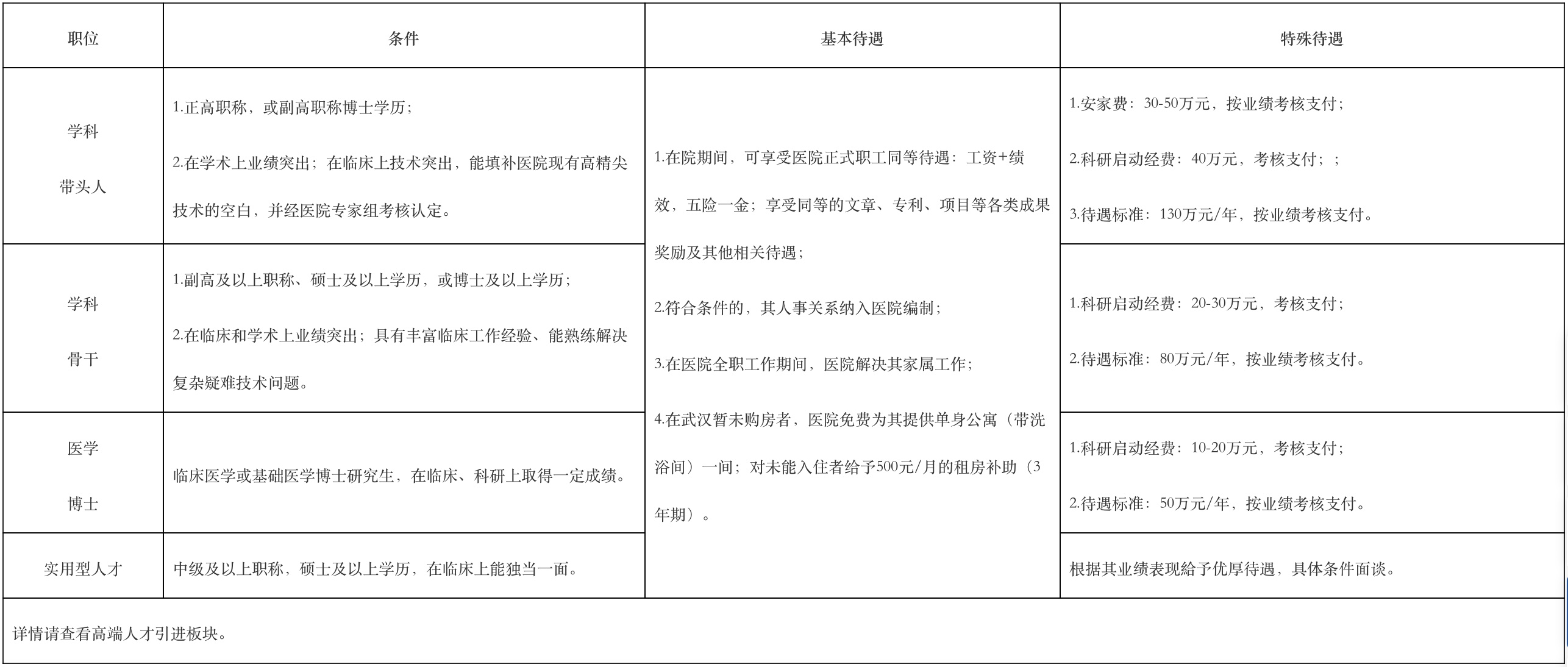 一经录用,签订劳动合同、聘用合同,执行国家有关政策及医院相关规定;同等享受院内晋升、晋级及干部提拔相关政策。高层次人才待遇面议。