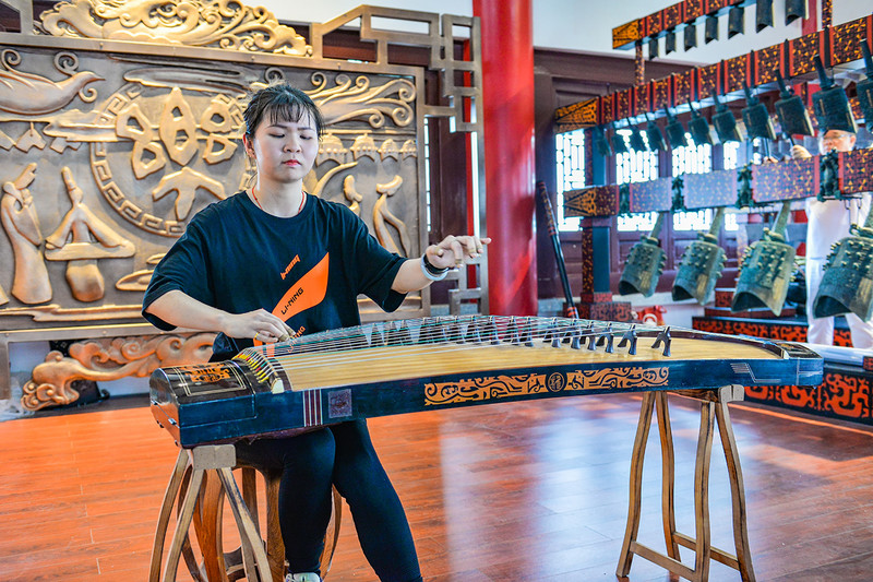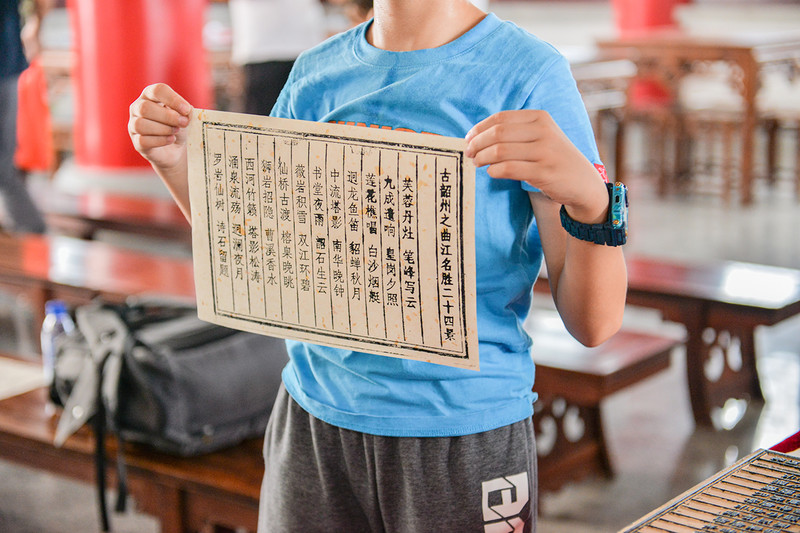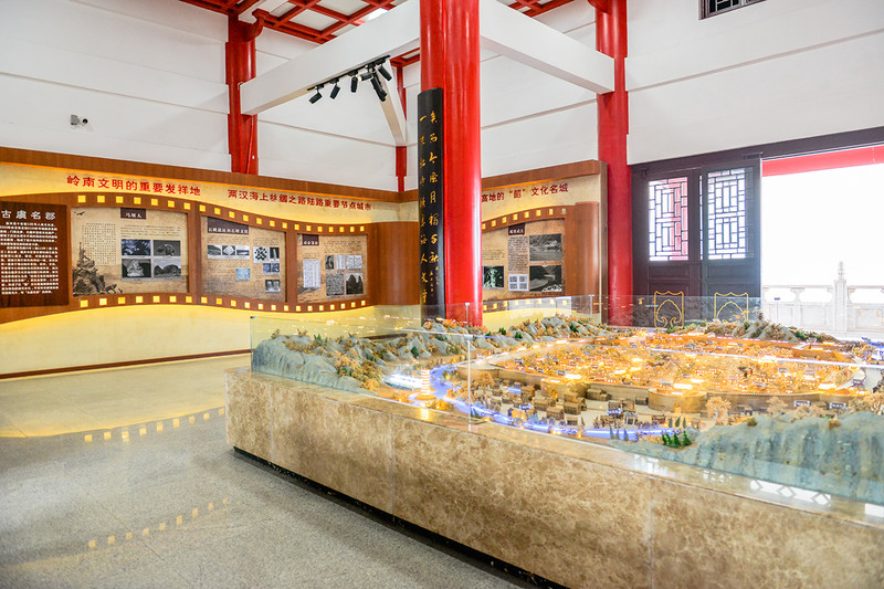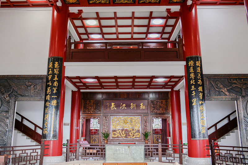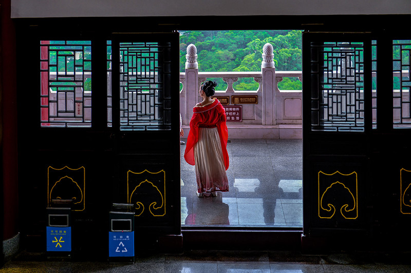整座楼共五层,取金木水火土五行之意,每一层都设置有专门的展览馆。一楼主要展示的是六角古塔基遗址,二三四楼,每层有不同的主题,介绍着这座城市的历史文化。五层是个演出互动大厅,可以在里面欣赏古筝古琴演奏,可以体验编钟,还可以自己动手玩投壶,做拓印,傍晚时分,这里也是观韶关夕阳的一个绝好地带。如果是去拍照,着汉服也是绝佳,在楼上随手拍的一个红衣汉服小姐姐,再回首,依然觉得如仙女下凡。