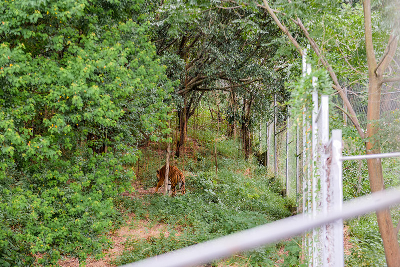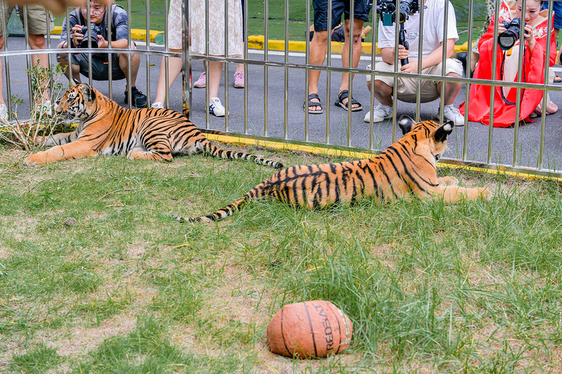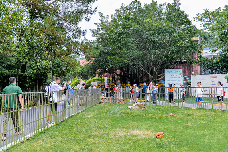同样在韶关国家森林公园之内,周边环境野趣十足。这个虎园是目前我们国家最大的的一个华南虎繁育研究基地,里面的华南虎数量多达13只,2021年还创下了“一年三胎四仔”的历史最高纪录。整个华南虎园分为驯养繁育区、野生驯养区和科普教育三大区域。我们去的时侯,正赶上迷你虎宝宝们在嬉戏,抢球,赛跑,玩得不亦乐乎,憨萌憨萌地自娱自乐,丝毫都不care围观的我们。