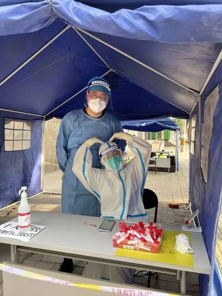 焦钰晖和刘甜甜同为北京广播电视台工作人员,也是花园路街道牤牛桥社区的一对党员夫妻。在看到社区招募社区区域核酸检测志愿者的公告后,夫妻俩立即一起报名参加,化身“大白”“小蓝”,在现场进行居民身份信息录入和秩序维持工作,用实际行动诠释了共产党员的责任与担当。