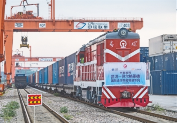 2020年5月9日,开往塞尔维亚贝尔格莱德的中欧班列(武汉)准备从吴家山站驶出