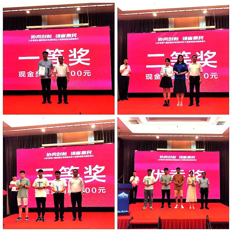 为鼓励创新创业,本次大赛对获得一等奖的团队提供3万元的创业奖励,对获得二等奖的团队各提供2万元的创业奖励,对获得三等奖的团队各提供1万元的创业奖励,对获得优秀奖的团队各提供1000元的礼品奖励。此外,获奖团队及成员还获得了由山东省大数据局、聊城市大数据局共同签发的奖杯和获奖证书。在颁奖典礼现场,与会领导为获奖团队颁奖。