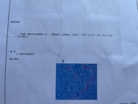 为了更好地准确识别小王的消化道病变,在征得他同意后,桐庐县第一人民医院消化内科李娅秀医生为他做了超声肠镜(EUS),检查结果提示类癌(神经内分泌肿瘤)。