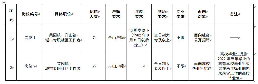 本次计划招聘嵊泗县城市专职社区工作者9名,设置岗位1,岗位2。