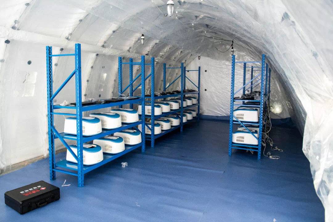 此次投用的实验室也叫“气柱式帐篷实验室”,主要有三个方面优点:一是安装便捷,只需简单平整场地后即可进行快速搭建,在1天之内投入抗“疫”战线;二是检测容量大,1个气膜实验室相当于数个到数十个医疗机构检测能力的总和;三是便于移动,能根据需要快速调度到各种气候条件的地区进行支援。