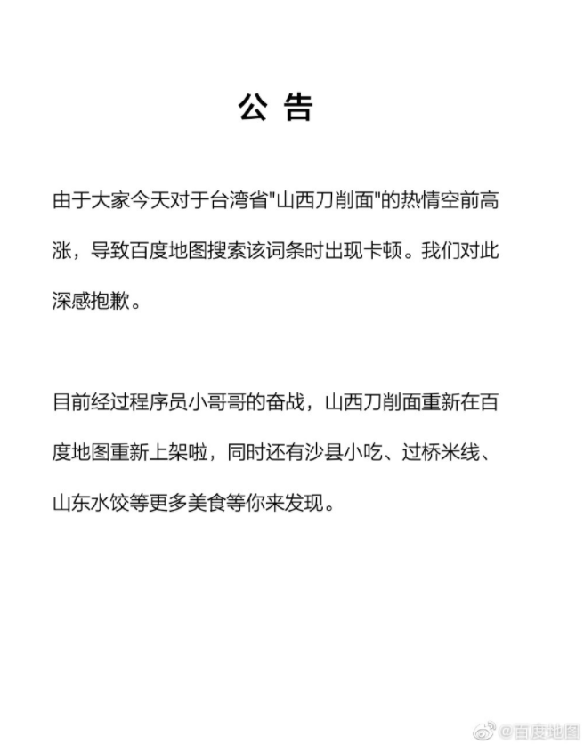 “地图可显示台湾省每个街道”,网友热情高致搜索卡顿,已恢复正常