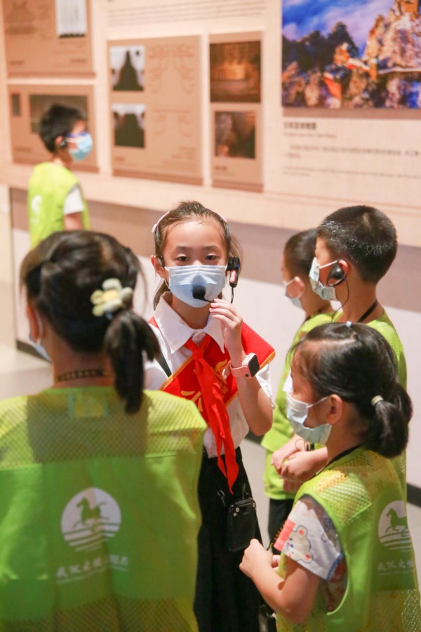 这次活动除了武汉文旅志愿者还有建筑科技馆“小小讲解员”志愿服务队一起为大家讲解。建筑科技馆“小小讲解员”志愿服务队自2021年7月组建以来,累计服务2000余小时,讲解500余场,服务受众人数3600余人次。此次,他们带领大家参观了古代建筑展厅和荆楚建筑展厅,成为了建筑科技馆的“最萌”代言人。小朋友们看着小小讲解员在前面为大家认真解说,不由得投出钦佩的目光,表示下次也想成为讲解员为大家服务。