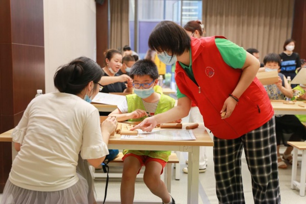 在“八一”建军节来临之际,武汉文旅志愿者在中国建筑科技馆开展“致敬英雄,见证荣光”主题志愿服务活动,吸引了近二十组亲子家庭参与。