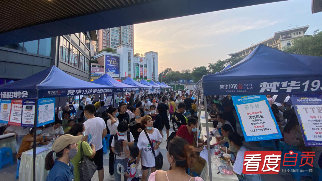 自流井区人力资源和社会保障局联合区就业局、区人力资源服务中心、梵华1939运营公司,对入驻商户进行“一对一”摸排,累计摸排商户100余户,收集岗位需求1000余个。8月4日—5日,招聘会连续两晚举办线下专场招聘活动,除线下招聘外,还开通了云端直播带岗的新招聘方式,拓展了招聘渠道。
