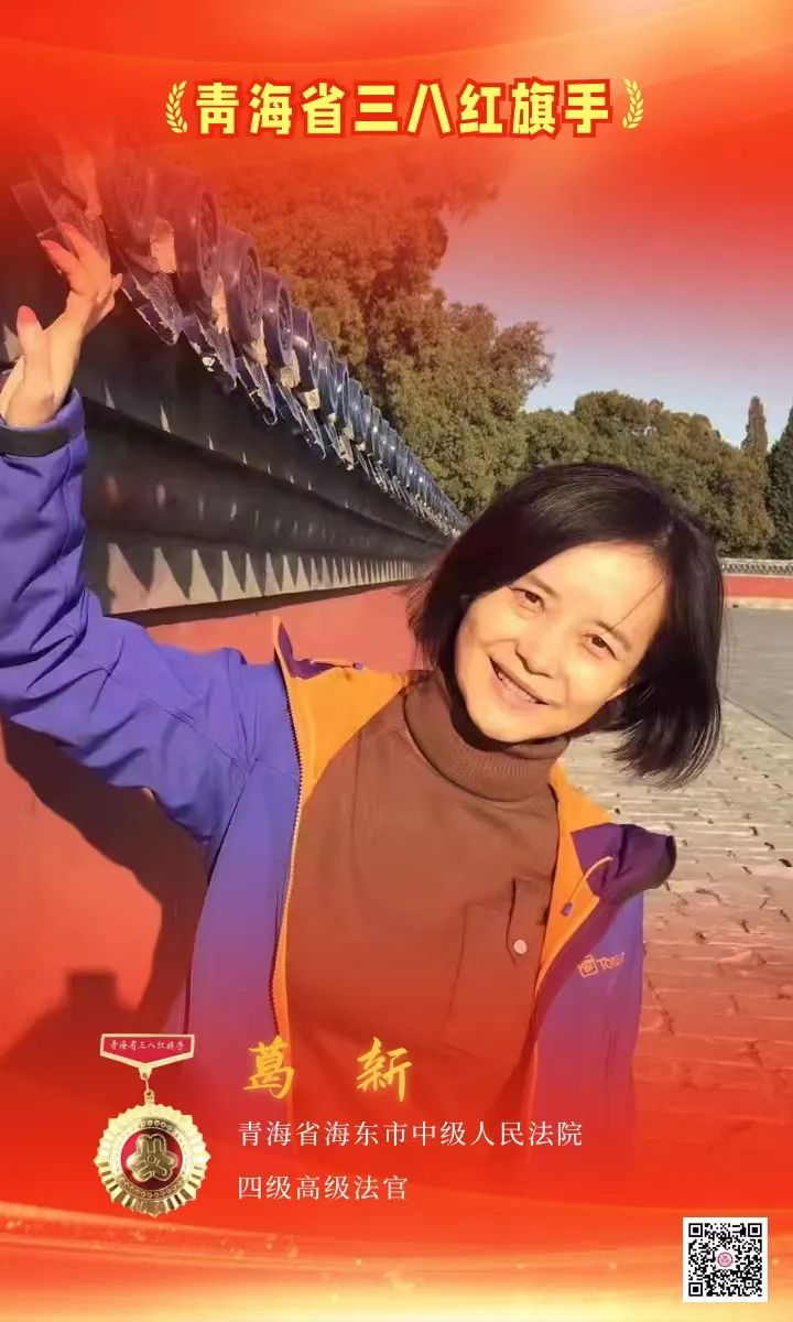 在海东市中级人民法院有这样一位法官,从书记员到助理审判员,再到经验丰富的四级高级法官,25年来,她的进阶之路充满着辛勤与汗水、责任与担当。在工作中,葛新同志敢于担当,积极作为,坚持司法为民思想,履行审判职责,把所审理的每一起案件都办成经得起历史检验的铁案,并积极投身到“扫黑除恶”专项斗争和反腐败职务犯罪案件审理当中,努力做到法律效果和社会效果的统一。近几年,审理及参加评议一、二审刑事案件200多件,而且无一被上级法院发回重审,更无冤假错案出现。连续三年办理案件数、参加评议案件数、案件质效均名列全院前列,作为案件评查法官,完成了省政法委、省法院等单位组织的涉黑恶案件、减刑、假释、暂予监外执行等近百件案件的评查工作。凭借过硬的业务能力,先后多次被评为省市法院系统先进个人、先进工作者、办案能手、优秀共产党员,并荣获个人“三等功”3次。先后多次被评为省市法院系统先进工作者、办案能手、优秀共产党员,优秀公务员。2020年被省妇联授予“青海省巾帼建功标兵”。2021年获青海省高级人民法院“扫黑除恶”专项斗争个人嘉奖。