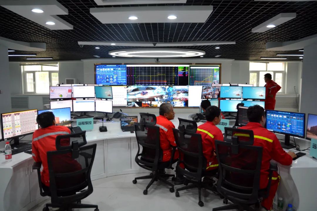 7月30日13时56分,EISC远程支持中心顺利接收控制权。施工指挥、设计人员、泵控操作手、混砂操作手、仪表操作手在EISC中心实施远程控制。整个施工作业在各岗位有序配合下,加砂、泵液无差别地抵达目标油层,施工作业中测试应答良好,压裂液泵入位置精准,泵入顺利。