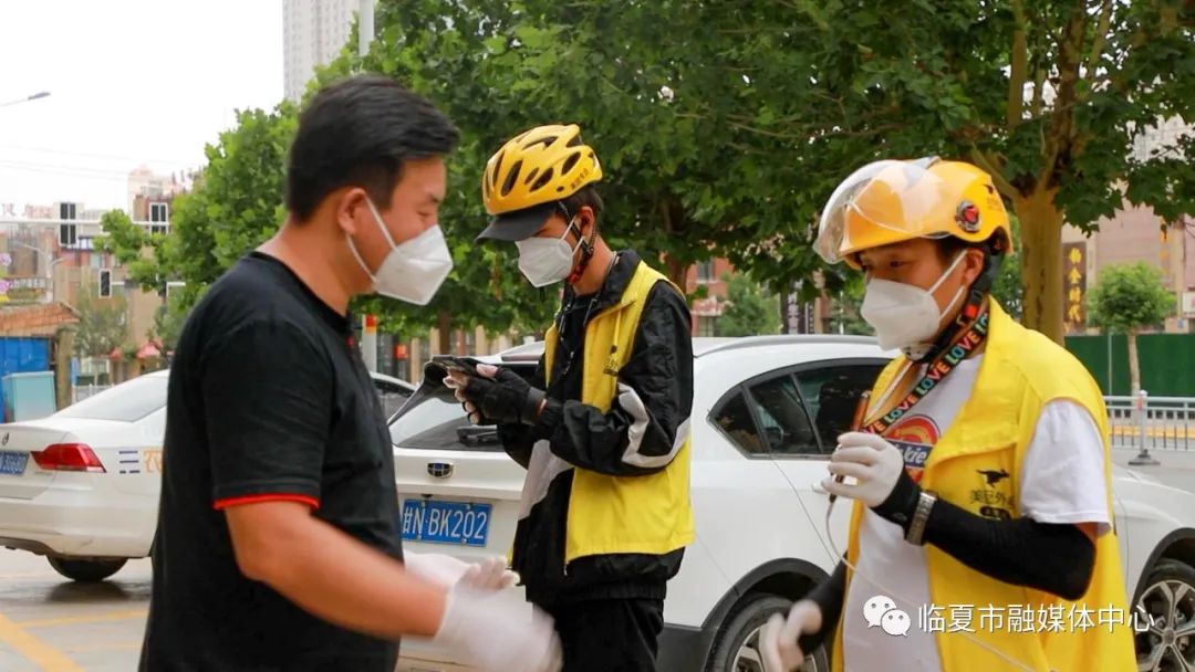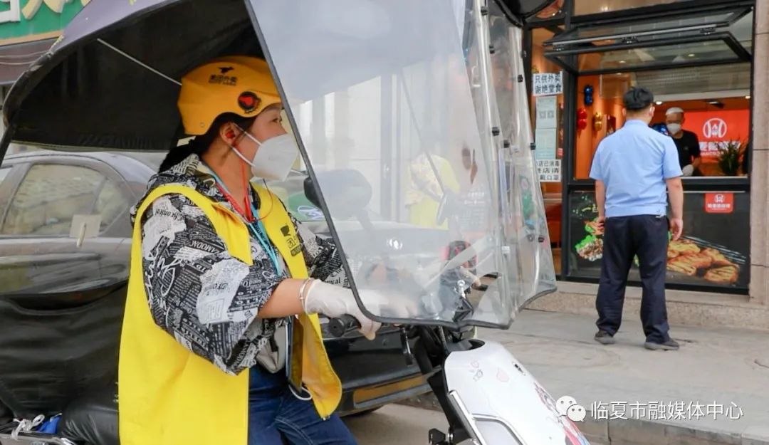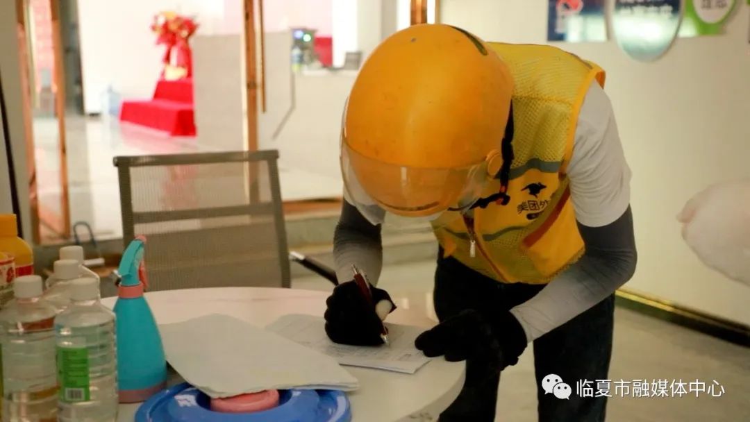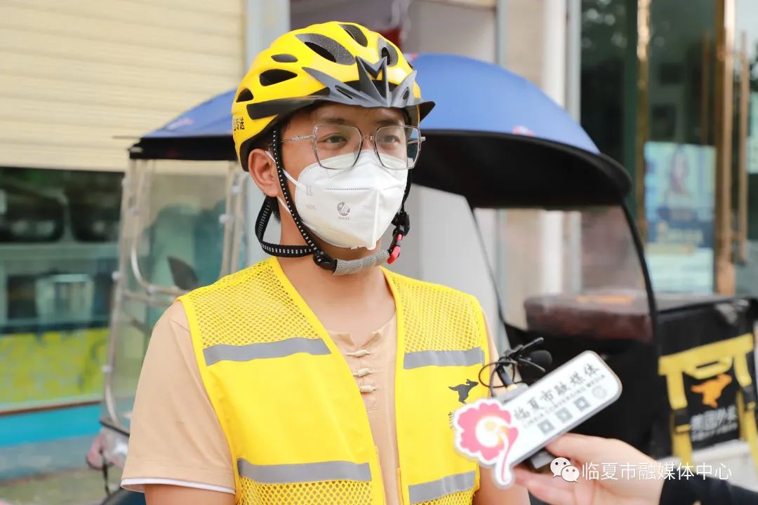 临夏市美团外卖骑手 马斌:我们每天上班前的准备是到站点由领导检查餐箱消毒和车辆消毒,每天每人佩戴N95口罩和一次性医用手套,送餐过程全部是无接触配送。