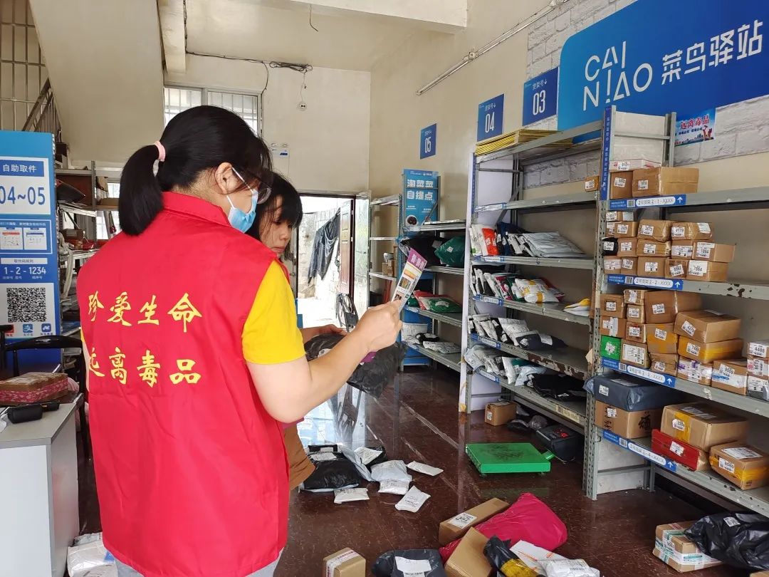 活动中,禁毒社工走进中通快递、菜鸟驿站、德邦物流等网点,通过讲解禁毒知识宣传手册,让从业人员了解相关法律法规以及毒品知识。禁毒社工还发动寄递行业的每一位工作人员积极关注柳州禁毒公众号和中国禁毒公众号,发现疑似毒品的物品要及时报警,公安机关将在第一时间进行核实,如果查实将按照相关规定进行奖励。