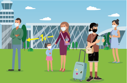 在商场、超市、银行、医院、酒店等公共场所,在地铁、车站、码头等人流集散区域,文明排队、有序通行,始终牢记保持一米以上的社交距离。