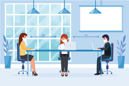 工作场所加强通风换气,办公座位相互保持一米以上的社交距离。与人交流保持适当距离,共同守护健康。