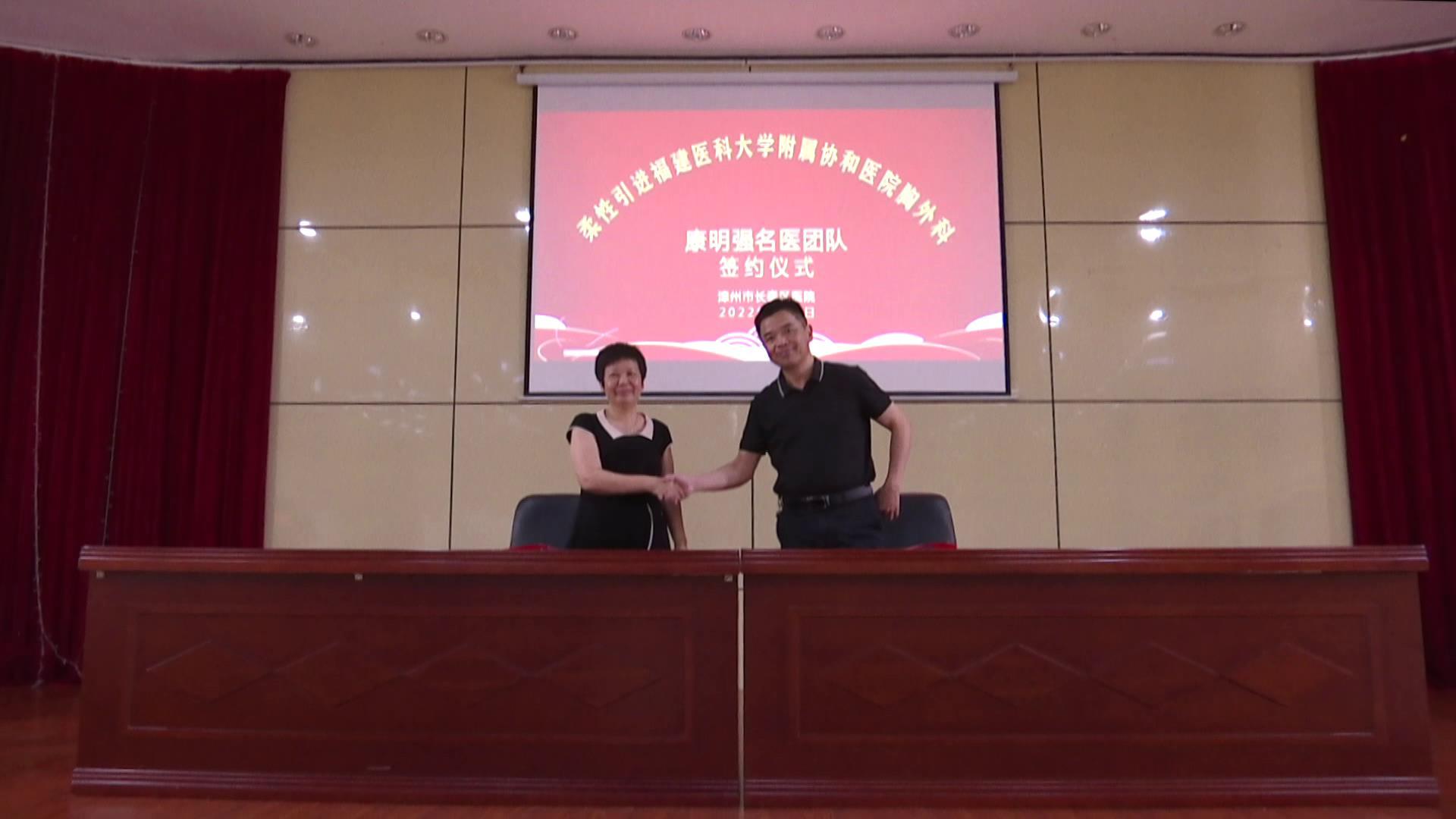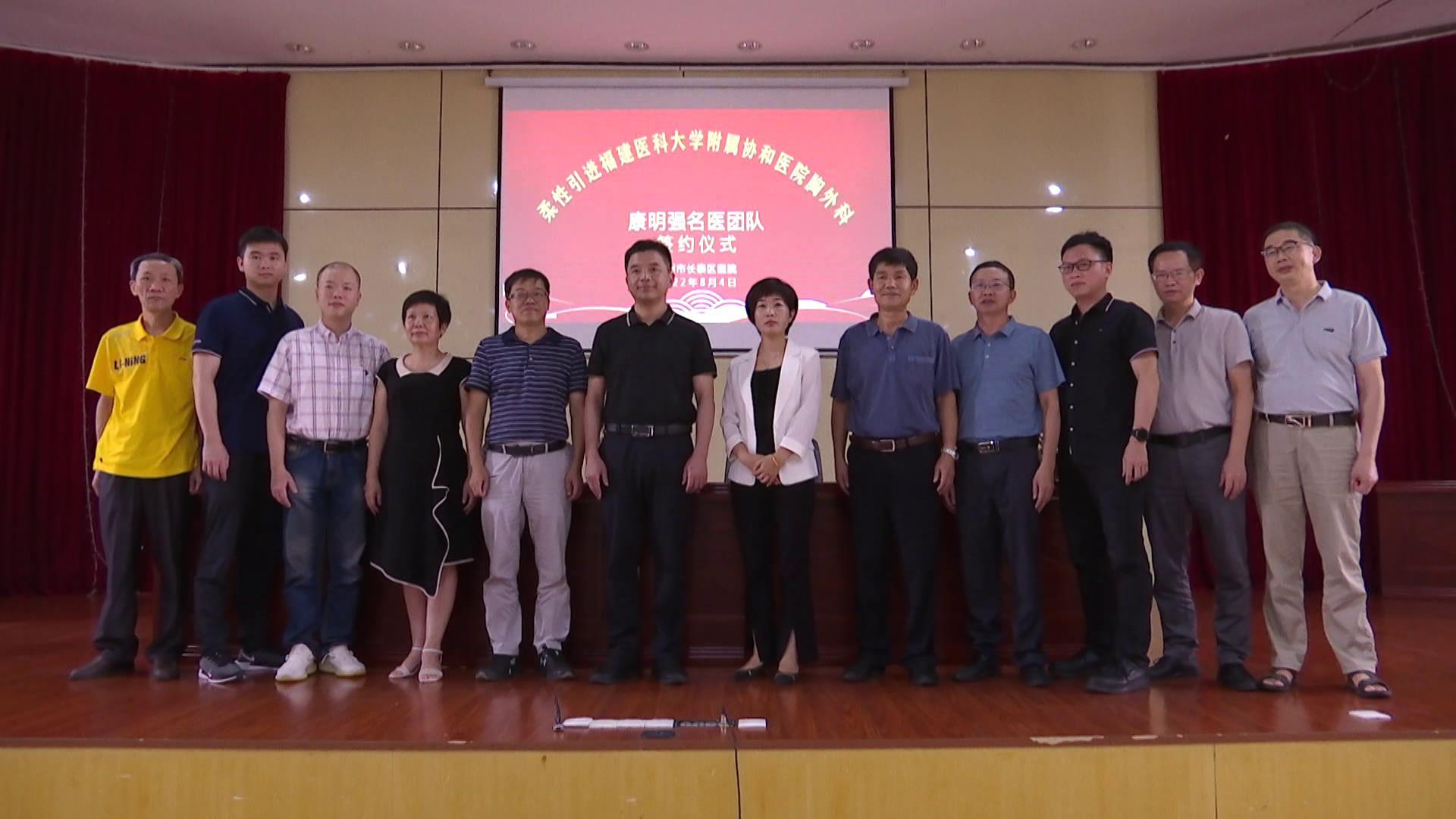 8月4日下午,长泰区总医院举行柔性引进福建医科大学附属协和医院胸外科康明强名医团队签约仪式,副区长严惠娇参加仪式。